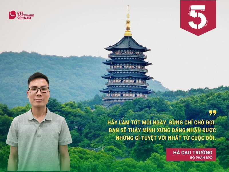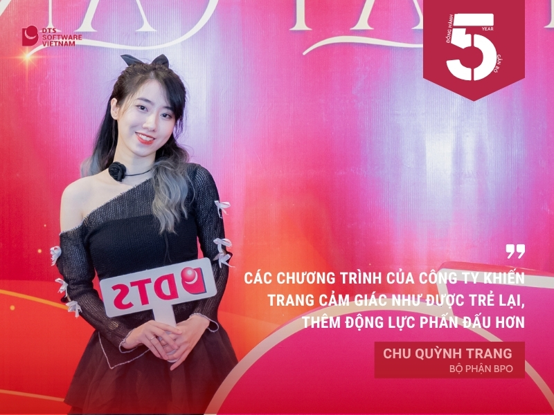 Mỗi thành viên DTS Việt Nam là một mảnh ghép quan trọng để tạo nên văn hóa của DTS Việt Nam. Mỗi nấc thang phát triển đều có sự đóng góp không hề nhỏ bé của DTSers. 5 năm cống hiến – là dấu mốc quan trọng của mỗi thành viên DTS Việt Nam. Đó là hành trình đầy tự hào của DTS Việt Nam và của chính DTSers.