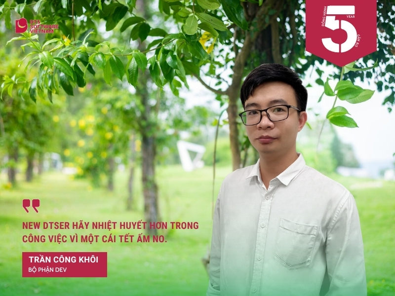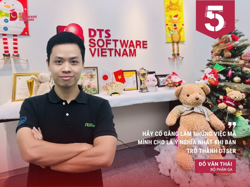 Đối với anh Khôi.TC thì 5 năm vừa qua là sự thay đổi về công việc. Với vị trí trước khi vào DTS Việt Nam là một Web Developer thì khi gia nhập team DEV 2, anh Khôi đã chuyển sang và trở thành một C++ Developer. Với hành trình 5 năm qua anh đã học được nhiều kinh nghiệm quý báu từ anh em đồng nghiệp, cũng nhận được sự giúp đỡ nhiệt tình của các bạn trong team khi anh bị ốm đau, bận việc và đặc biệt là khi con Cô Vy ghé chơi với anh 2 tuần. Và “lòng tốt, sự nhiệt tình và vui tính của anh em đồng nghiệp” là điều mà anh cảm thật tự hào nhất khi là một thành viên DTS Việt Nam.